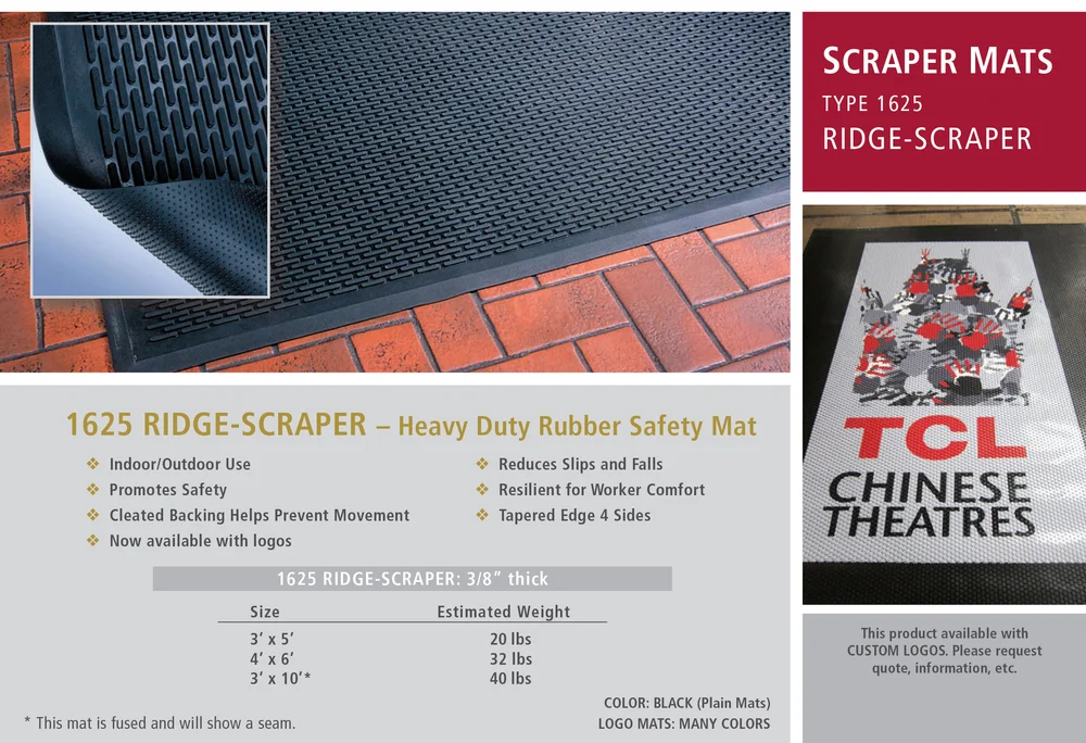1625, ridge scraper, ridge-scraper, heavy duty, rubber, safety, safety-mat, safety mat, indoor, outdoor, slip, fall, reduce falls, reduce slips, logos, custom, tapered edge, 4 sides, entrance, exit, worker comfort, 3x5, 3'x'5, 3' x 5', 3 x 5, 4x6, 4'x6', 4' x 6', 4 x 6, 3x10, 3 x 10, 3'x10', 3' x 10'.