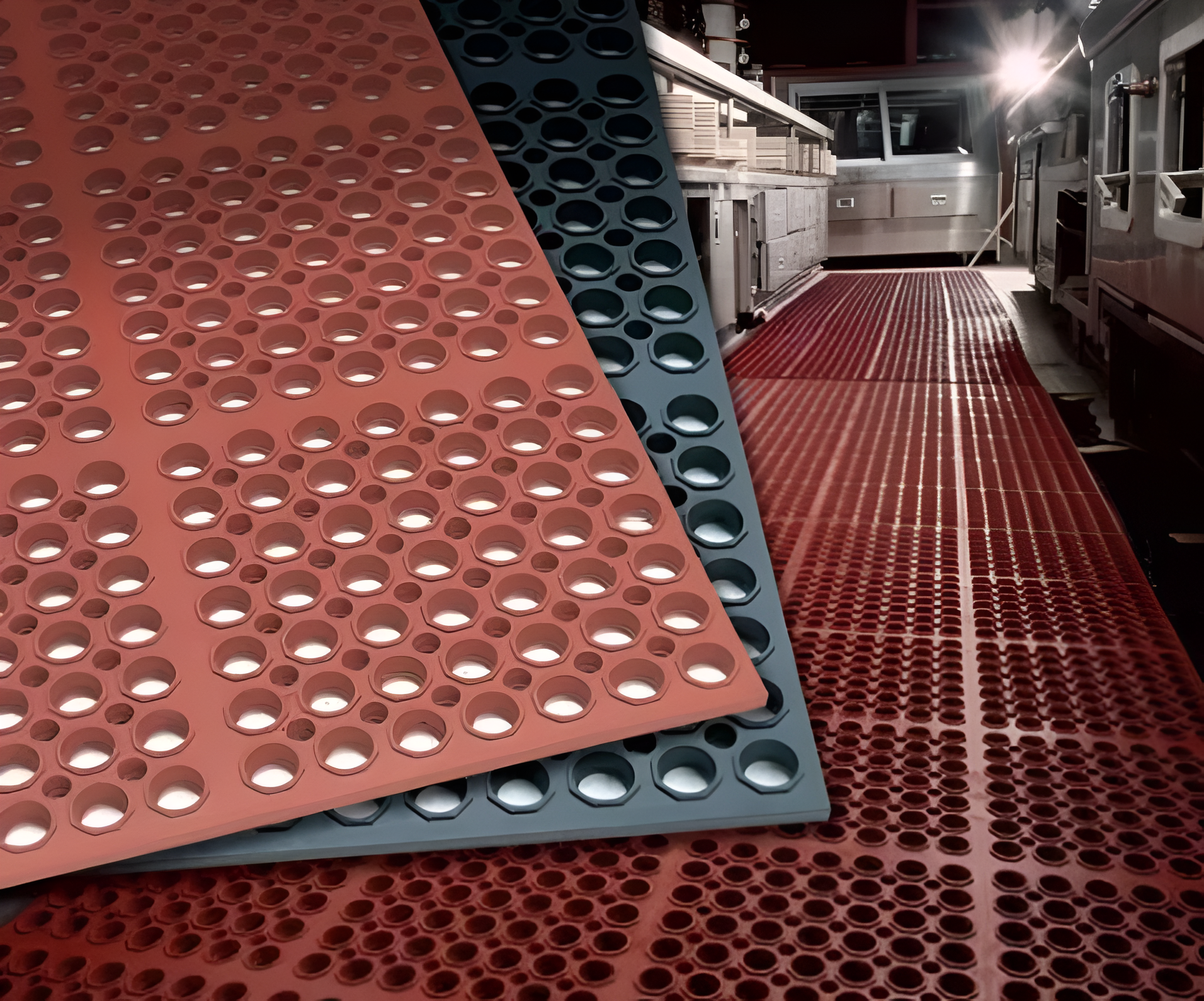 Commercial floor mats are specifically designed to perform in demanding kitchen environments. Their textured surfaces and drainage features help maintain traction even when floors become wet.