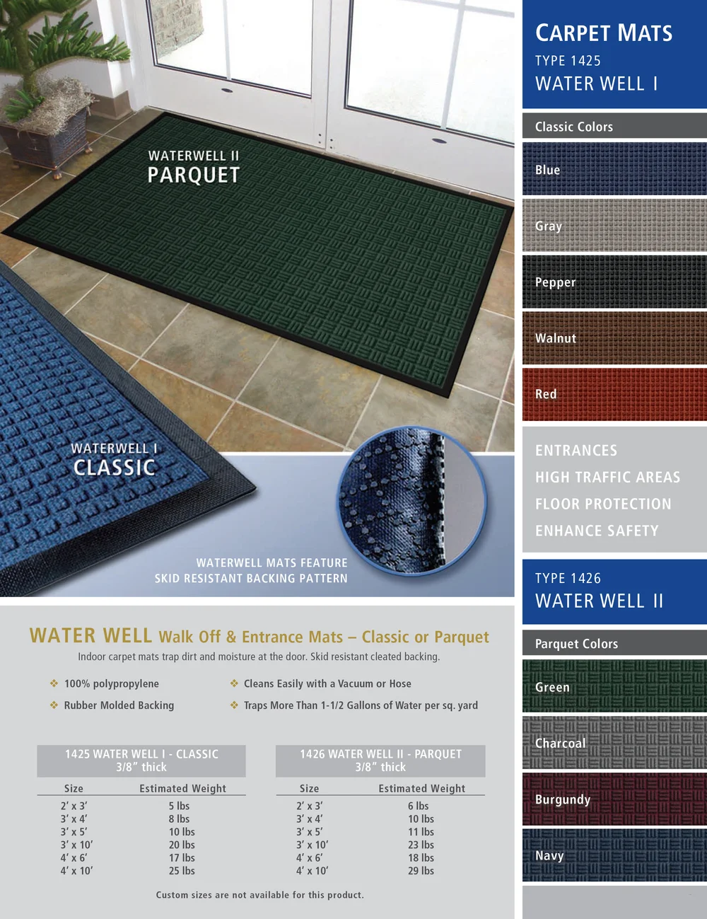 water well, walk off, entrance, entrance mats, classic, parquet, classic, parquet,high traffic, floor protection, entrance safety, vacuum, home, rubber molded, polypropylene, traps water, water well 1, water well 2, 1426, 1425.